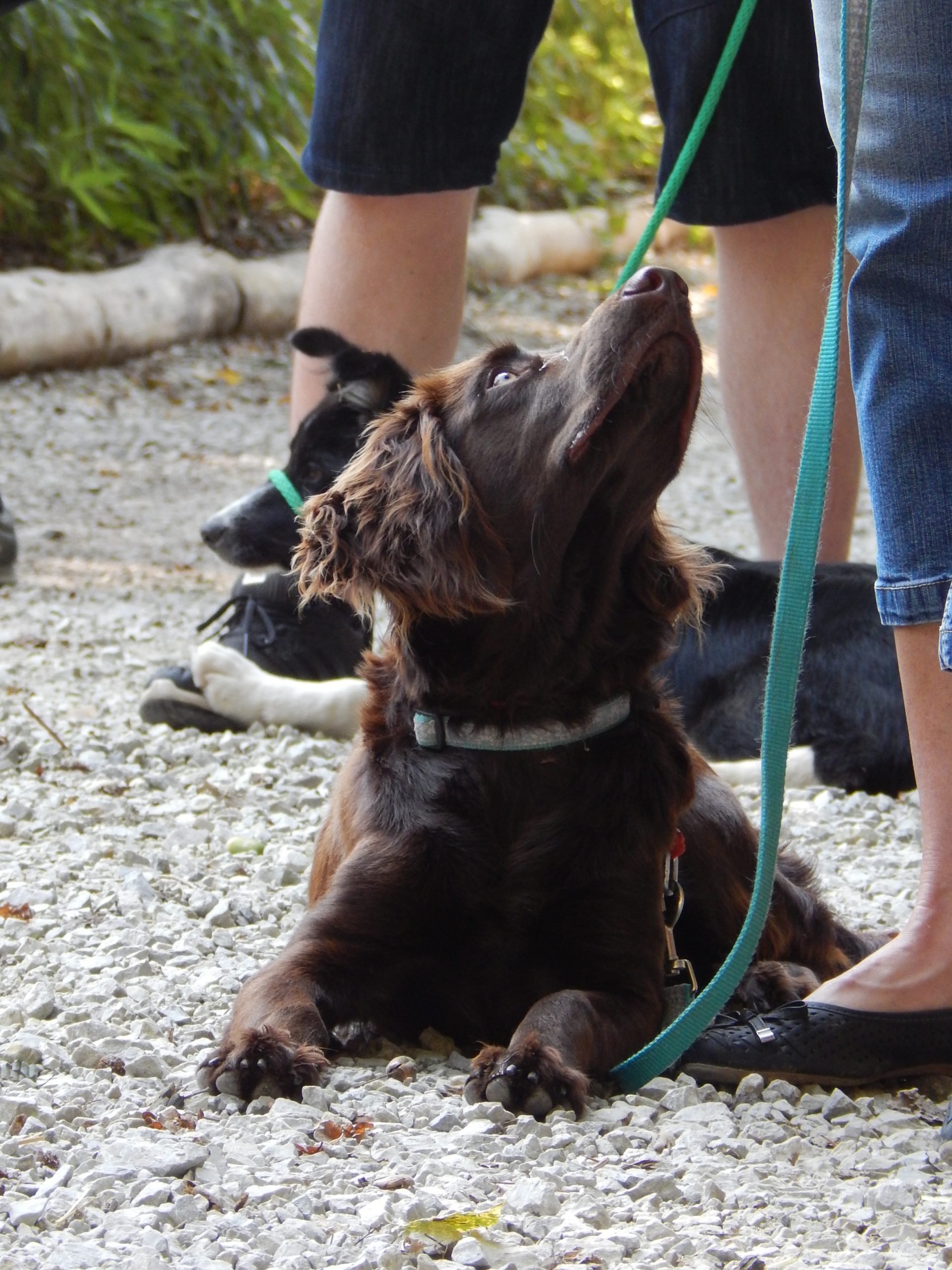 - utrdimo osnove komunikacije in umirjenosti ob distrakcijah, kot so drugi psi, tujci, otroci, kolesarji, novo okolje, itd.